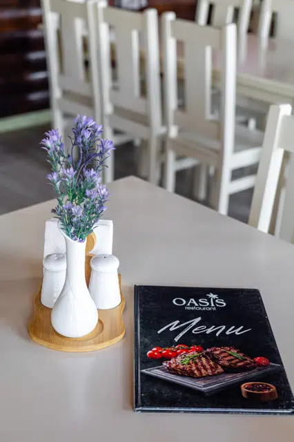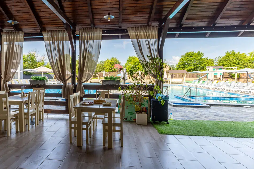 Бар на території готелю OASIS – це ідеальне місце для приємного вечора після купання в басейні чи прогулянки біля соляних озер Солотвина. Затишна атмосфера, уважний персонал і широкий вибір напоїв роблять цей простір улюбленою локацією гостей.
